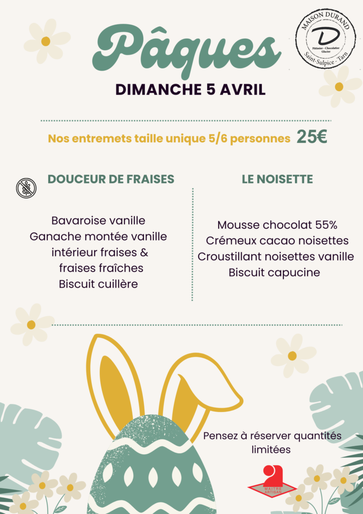 Nous sommes fiers de notre ancrage local et de nos valeurs artisanales. En tant qu’entreprise tarnaise, nous privilégions les circuits courts et sélectionnons avec soin des produits frais et de qualité, issus de producteurs locaux, pour créer des pâtisseries authentiques et savoureuses. Chaque création est élaborée dans notre laboratoire de Saint-Sulpice par Monsieur Durand et son équipe, avec un savoir-faire 100 % artisanal.